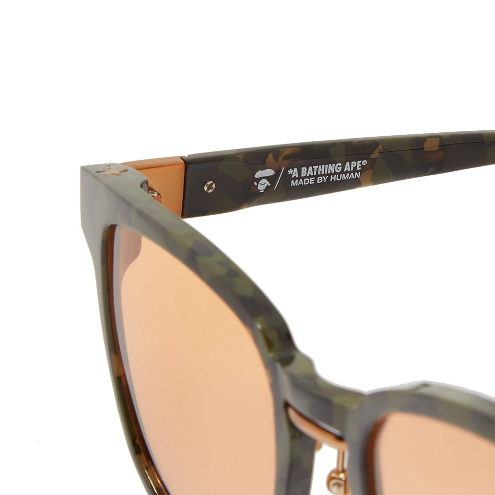 A Bathing Ape uses its unique street-ready approach to design to create these sleek green sunglasses. They are crafted in Japan from sturdy acetate and feature signature ape branding at the arm.