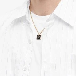 A.P.C.is focused on creating simple and elevated pieces to enhance your collection. This necklace, with its understated logo plaque and delicate gold chain, is the perfect option when you’re looking to accessorise your everyday looks, without overdoing it.