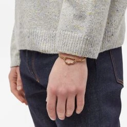 While A.P.C. creates elevated staples with understated French flair, they’ve always retained a utilitarian slant. And, nothing says utility like a carabiner lock. Taken as the main feature of this bracelet, it’s gold and strung on a chunky chain elevating it from a practical accessory to a chic adornment.