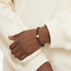 The skull has remained a mainstay of Alexander McQueen’s collections since it was first introduced in the British brand’s 1992 “Jack the Ripper” inspired runway – so of course you’ll find it on this bracelet. The gothic gold-tone charm is surrounded by contrasting black beads to create a firm focal point, and you’ll find the classic logo engraved onto the reverse of the skull.