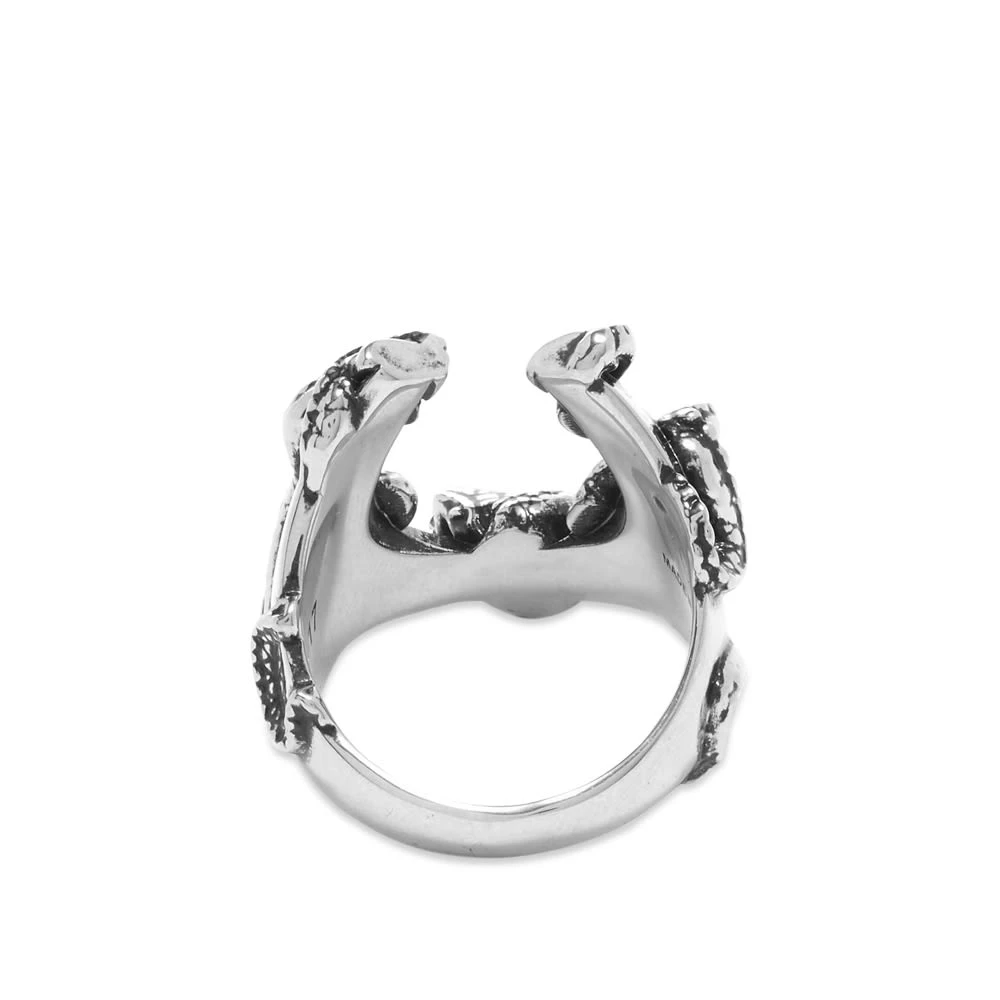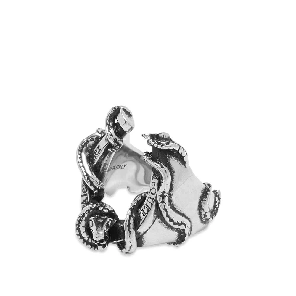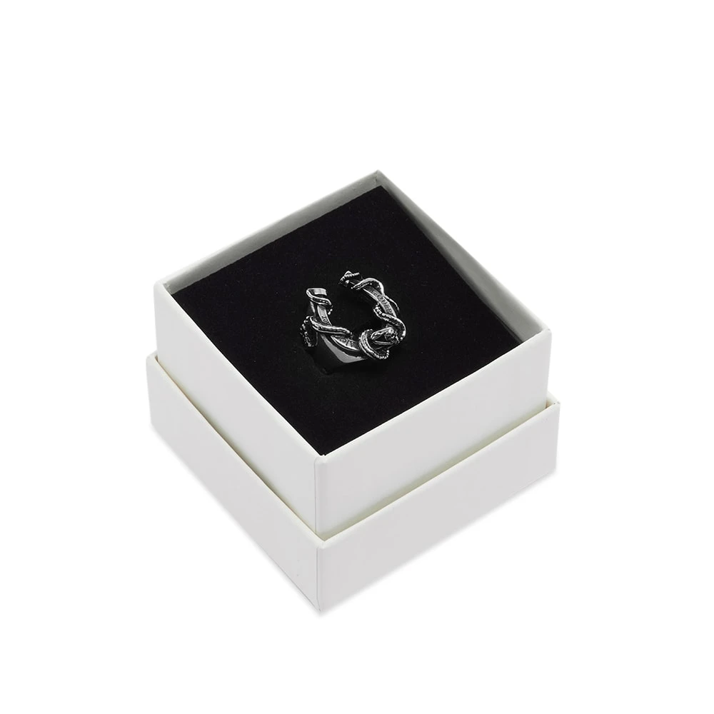 Crafted from silver-toned brass, this ring from Alexander McQueen takes you to the brand’s dark side. It shows off a snake and horseshoe emblem and promises to make a statement wherever you go.