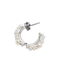 Turn heads with the help of these Stratus earrings from Completed Works. From the Tidelands collection, they’re inspired by the flow of water back and forth, with two lines of delicate freshwater pearls twisting around eachother, ontop of a platinum plated sterling silver half hoop.