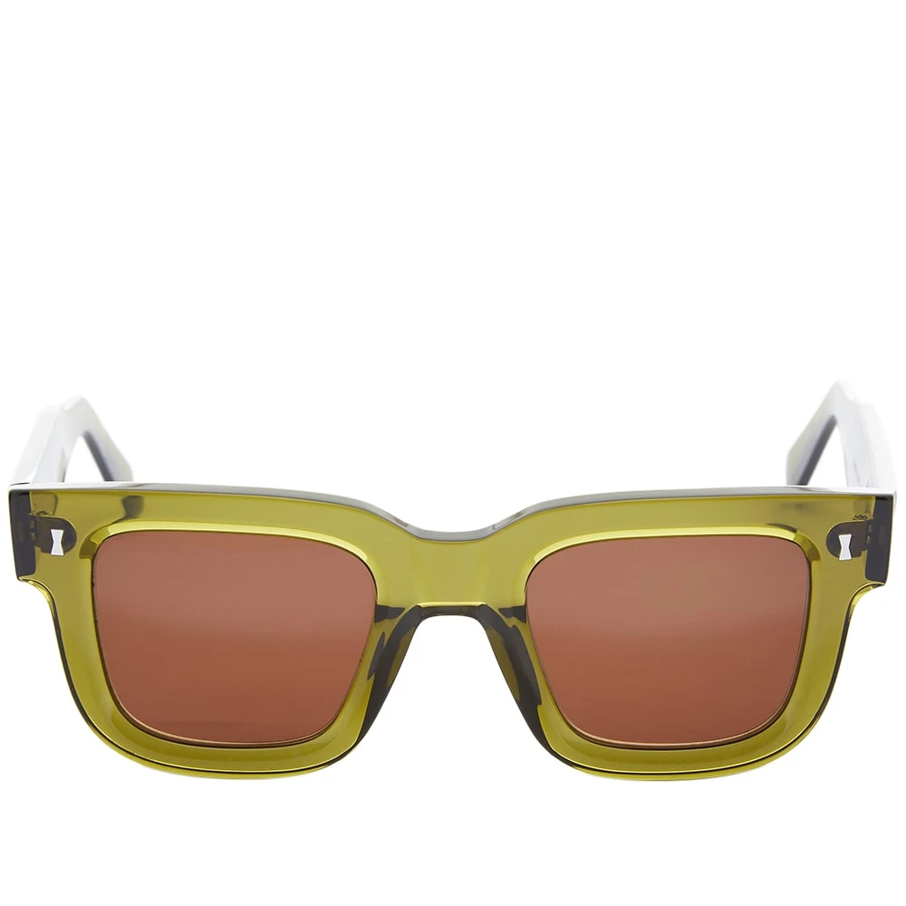 Designed to make a statement, these Plender sunglasses from Cubitts are crafted from durable cellulose acetate and boast a bold rectangular shape. The translucent khaki-green frames play on light reflection with bevelled detailing – and feature warm-toned lenses that provide optimal UV protection in style.
