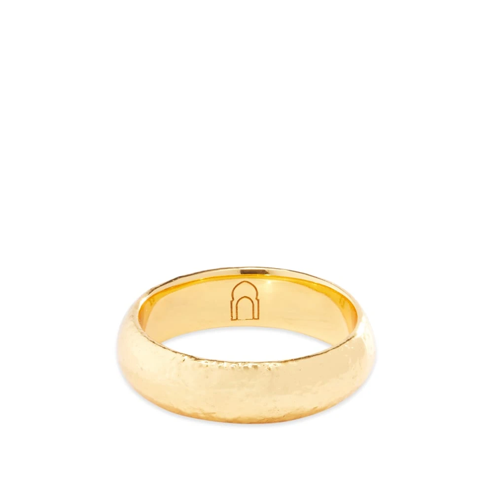 Perfectly imperfect, Dear Letterman’s Ayman ring blends the dehueded style of traditional metal casting with modern craftsmanship. Handcrafted using 925 sterling silver and coated with 24ct gold vermeil, it allows the wearer to keep in touch with antiquity while living amidst a world of ‘inexorable change’. Described as a ‘testament of the old, engineered by the new’, its hammered effect is reminiscent of the world’s inevitable ups and downs.