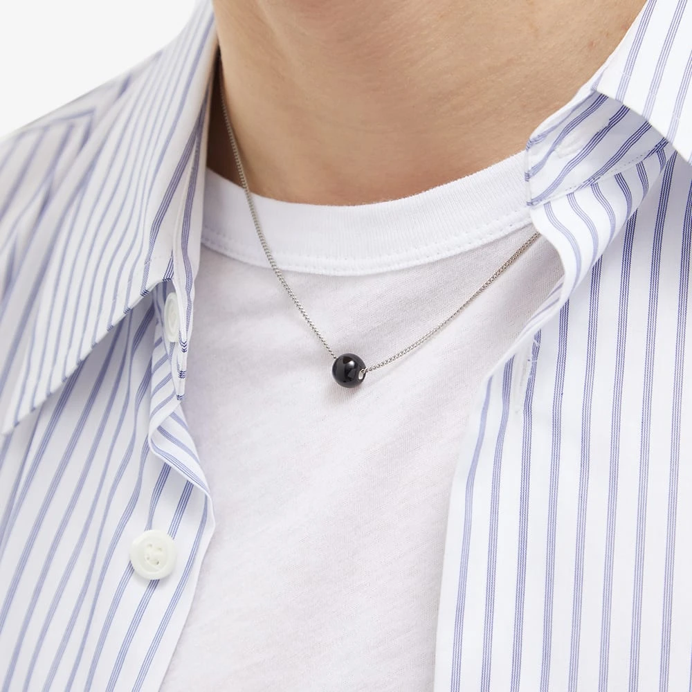 Classic and timeless, this necklace from Dries Van Noten is the perfect piece to add to your accessory collection. Made from brass it’s detailed with a black bead pendant completing the sleek look.