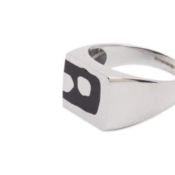 Emerging designer Ellie Mercer has created a niche in experimental jewellery with her label, where organic shaped resin and sculptural forms create one-of-a-kind pieces. This ring is handcrafted in the label’s London studio to a signet shape, with ‘Two Islands’ of sterling silver floating in a pool of resin.