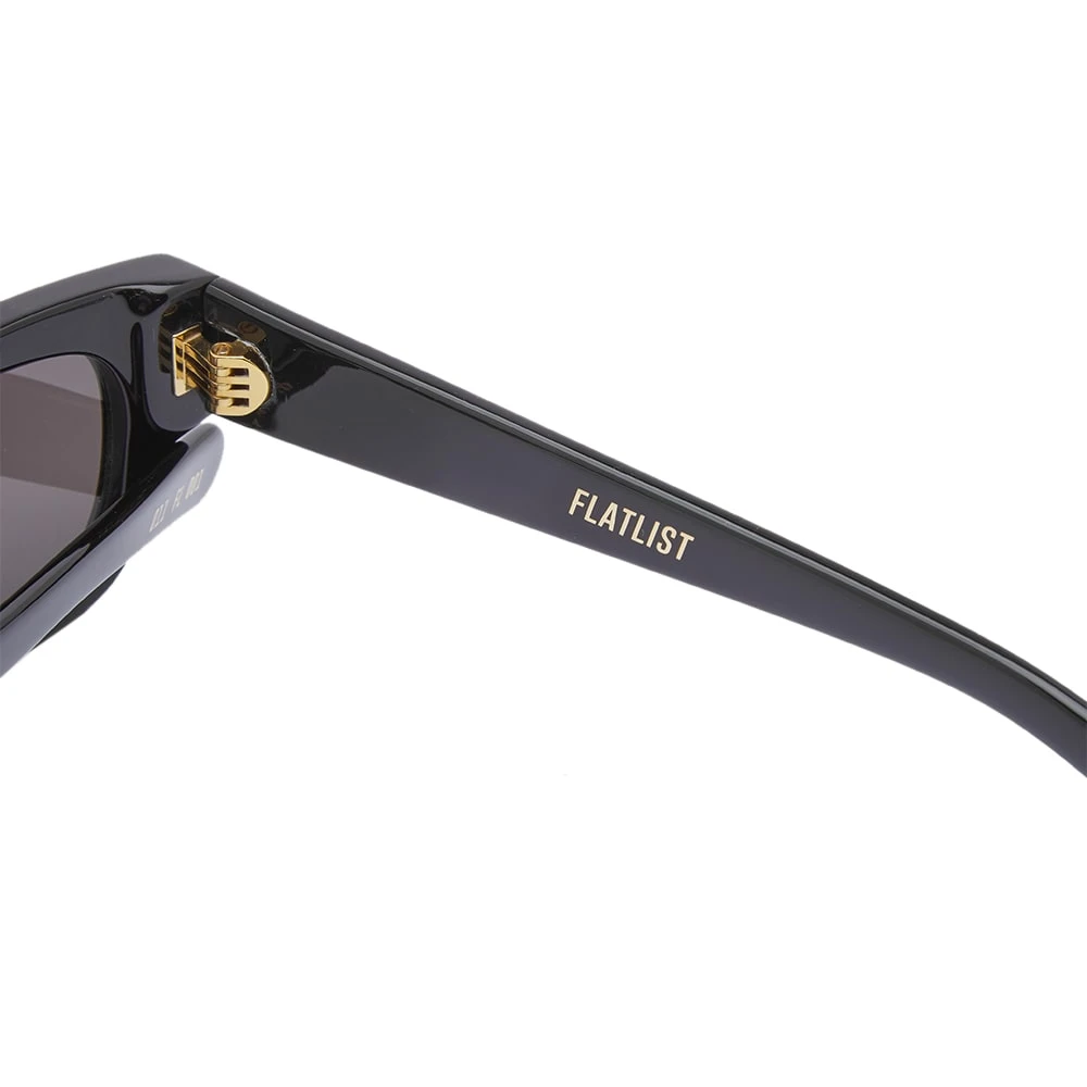 Copenhagen-based brand Flatlist pride themselves on creating high quality eyewear that is born of a moment of inspiration. Inspired by the fictional story of Hanky, these sunglasses are given a rounded rectangular lens with added space at the temples. The gold accents in the hardware and branding contrasts against the black.