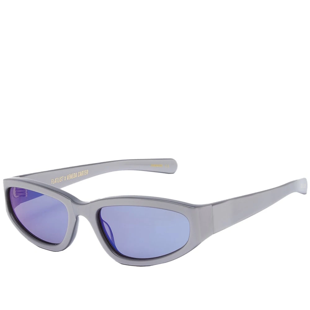 Copenhagen-based eyewear brand, Flatlist, draws inspiration from the plastic glamour of the ‘70s and ‘90s hip MTV vibes we all grew up on. The latter is exactly what you’re getting when the label teams up with Veneda Carter. Personal stylist to Kim K, she’s no stranger to coveted style and the Daze sunnies are next in line with their blue lenses housed in retro-futuristic silver frames.