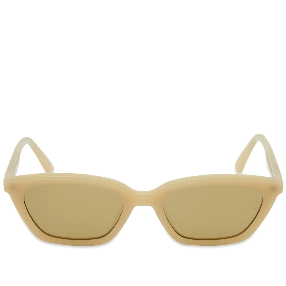 These Loti sunglasses from Gentle Monster are sure to bring a touch of sunshine to any outfit. They feature yellow cat eye-style frames – made from acetate for a comfy, lightweight feel – and are fitted with olive-green lenses, which offer unmatched UV protection. The pair is signed off with subtle metal detailing to the side of each arm.