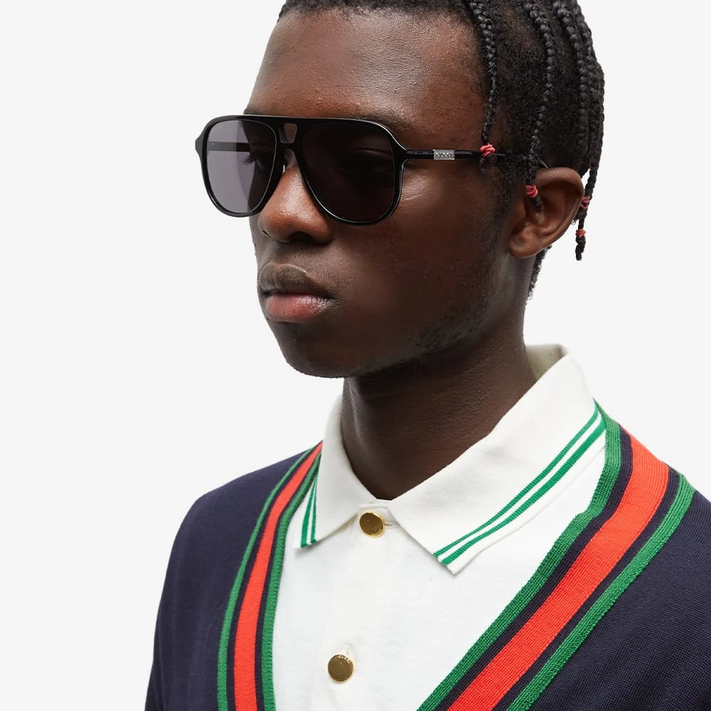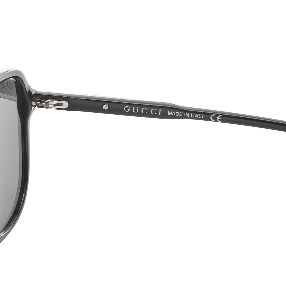 Timeless and classic, just as Gucci Eyewear likes it, these classic black sunglasses are crafted from smooth acetate and styled in a rounded-aviator shape for a classic touch. Fitted with a tinted lens, the pair are complete with silver branding at either arm for a luxe finish.