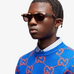 These Gucci Eyewear sunglasses showcase a futuristic and edgy look thanks to their extended detailing above the tinted lens. Crafted from tortoiseshell acetate, the pair are classically signed off with engraved branding at either arm.