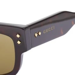 Tracing an electric journey through diverse eras and aesthetics, the new Gucci Eyewear collection mixes vintage memories with timeless heritage and a contemporary edge. Featuring a narrow rectangular frame, the GG1218S sunglasses are decorated with rivets and signature branding along the temples.