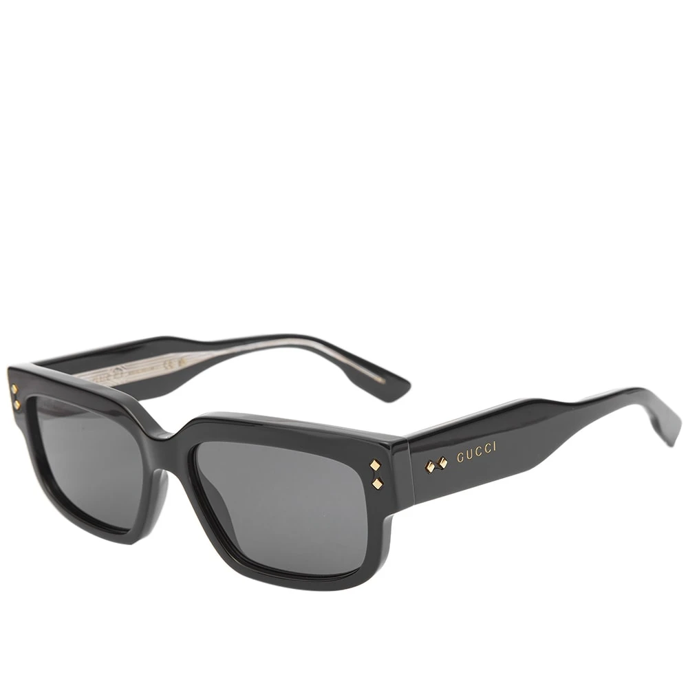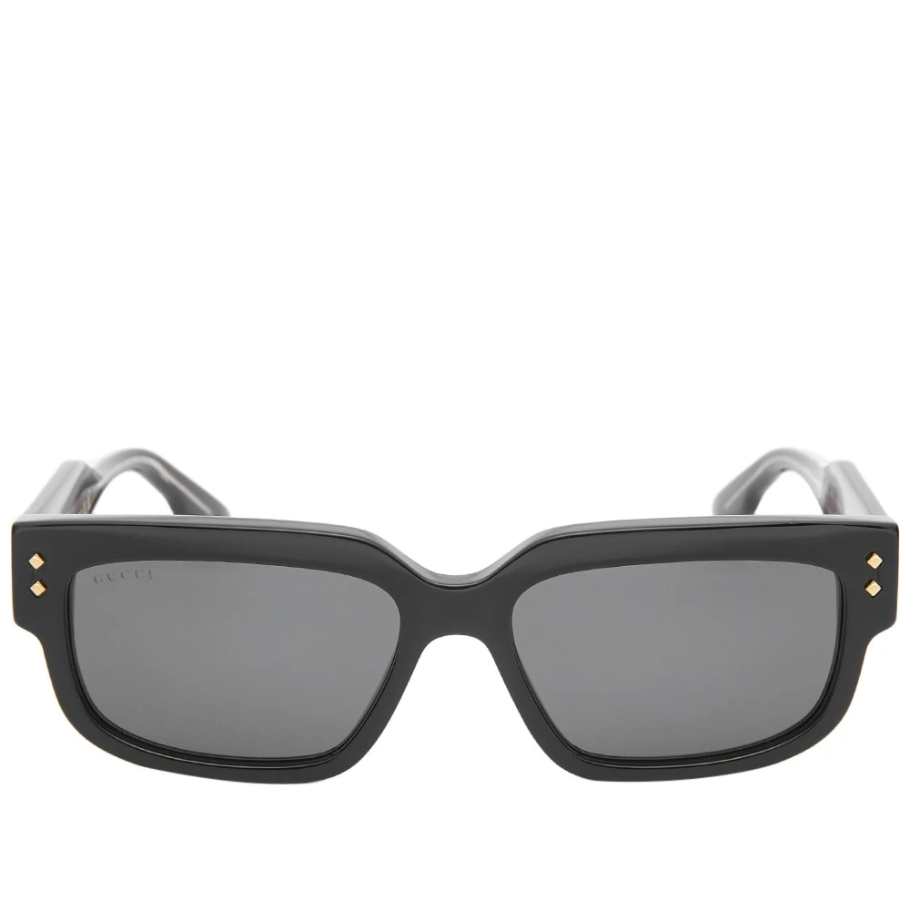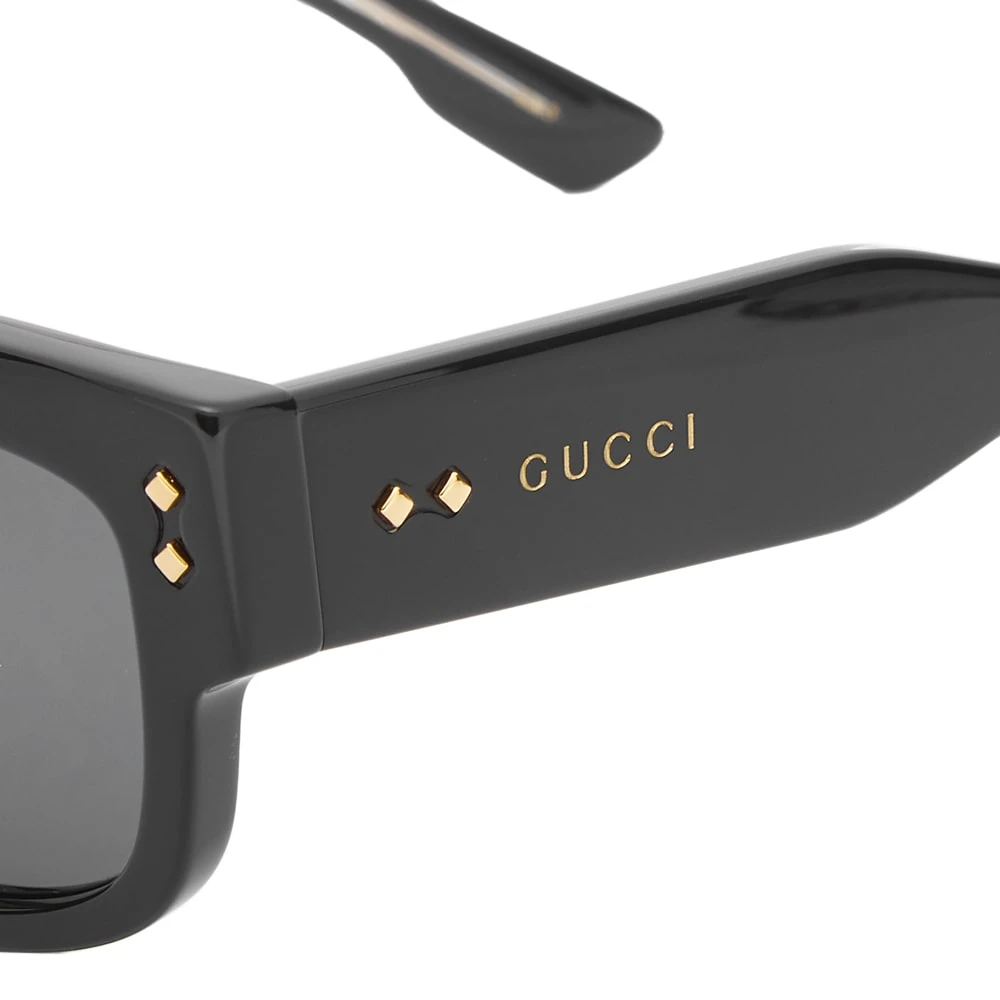 Tracing an electric journey through diverse eras and aesthetics, the new Gucci Eyewear collection mixes vintage memories with timeless heritage and a contemporary edge. Featuring a narrow rectangular frame, the GG1218S sunglasses are decorated with rivets and signature branding along the temples.