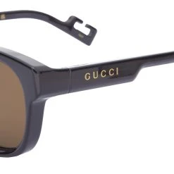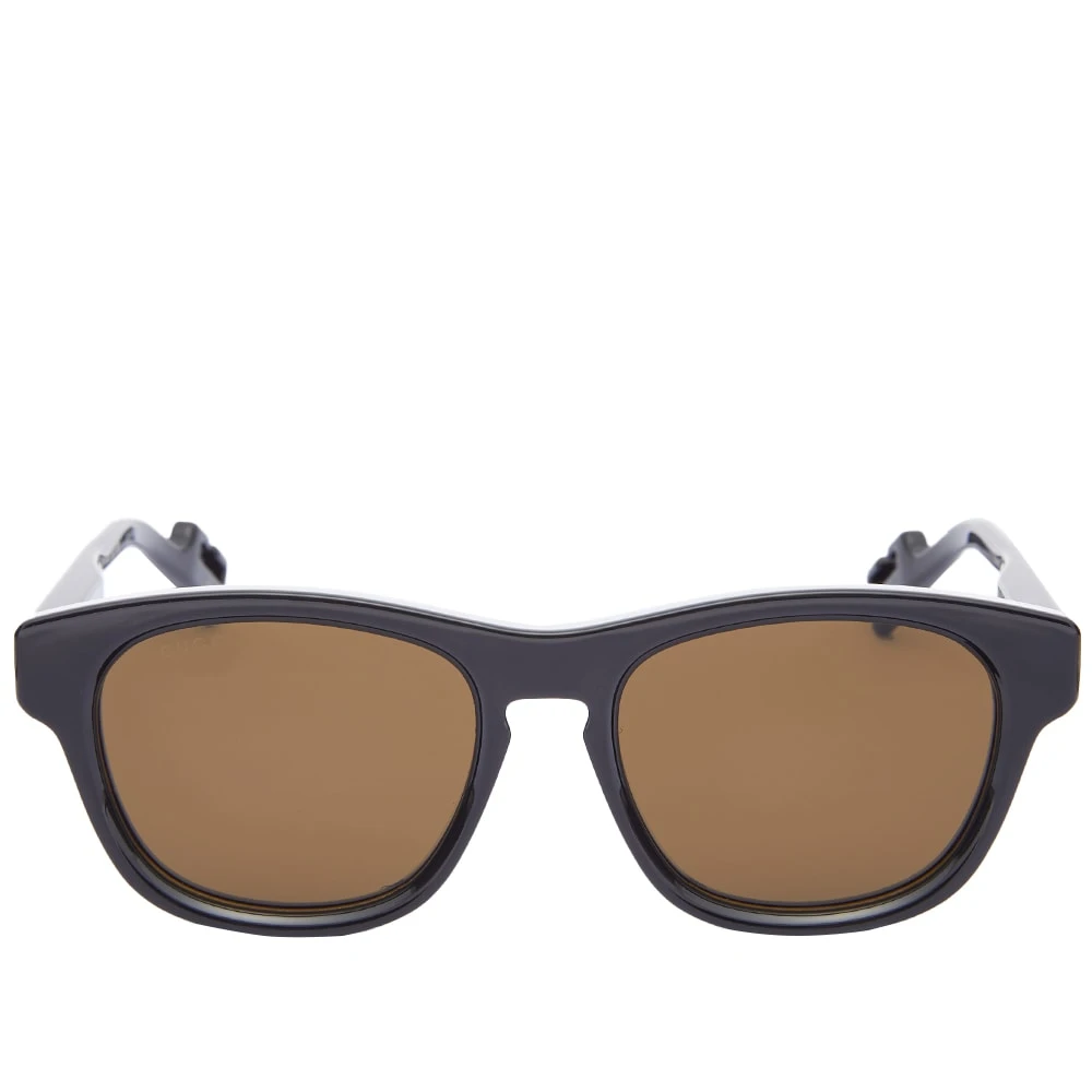Tracing an electric journey through diverse eras and aesthetics, the new Gucci Eyewear collection mixes vintage memories with timeless heritage and a contemporary edge. With a thick black rectangular frame, the GG1238S sunglasses feature a brown lens and additional strap, both adorn the brand’s logo.