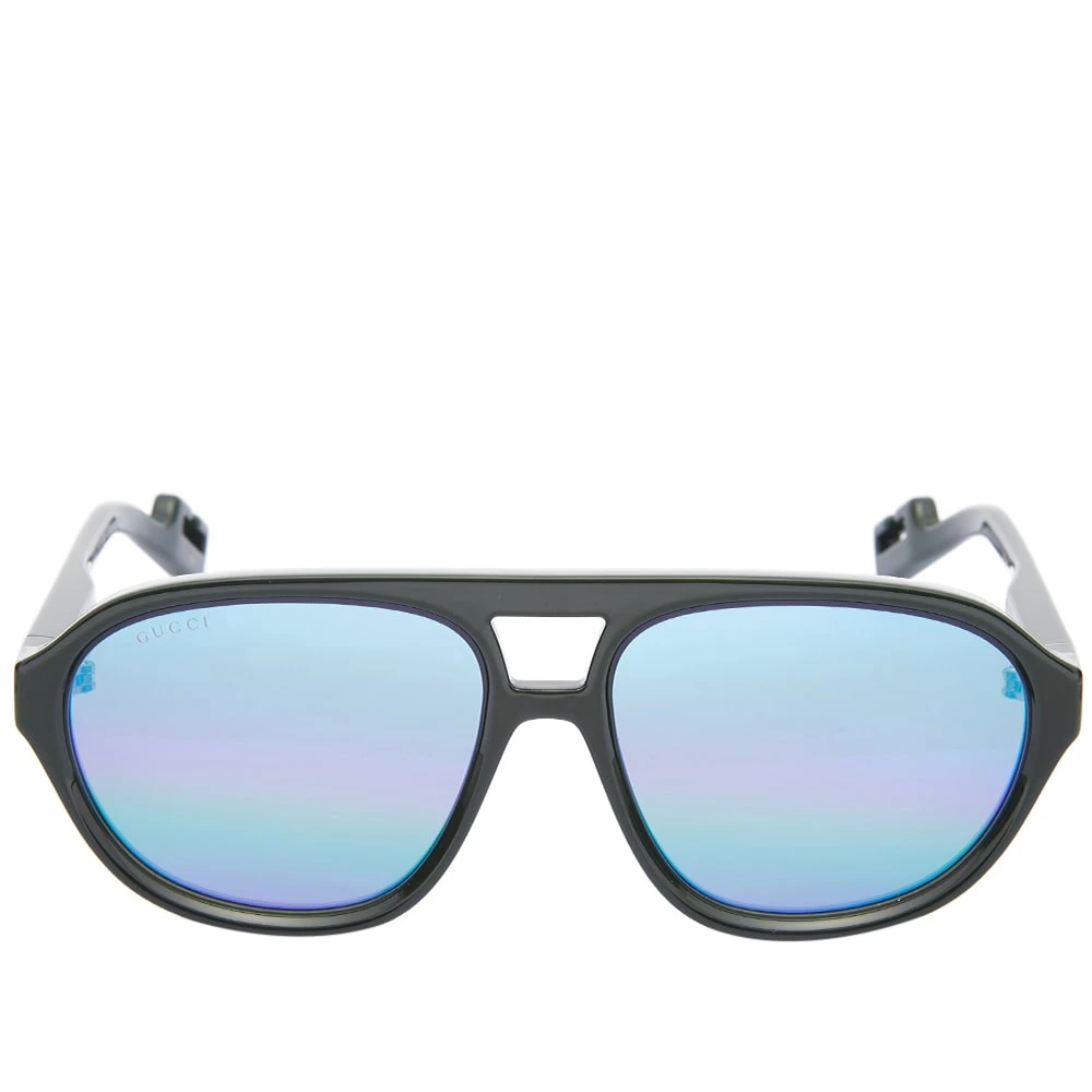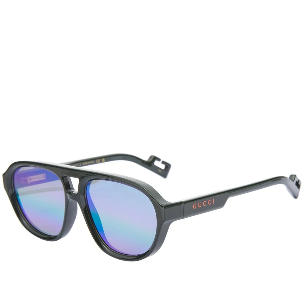 Under a new vision of creativity, Gucci Eyewear has redefined luxury for the 21st century, further reinforcing its position as one of the world’s most desirable fashion houses. Featuring a black oval, the GG1239S sunglasses feature a vibrant green and purple mirrored lens. Featuring an orange branded logo at the temple with a matching additional strap.