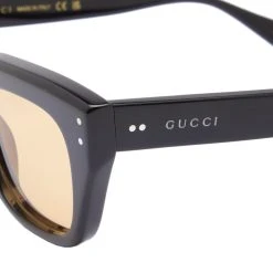 Italian fashion house Gucci is celebrated for its Italian craftsmanship and iconic styles since 1921. Now under the creative direction of Alessandro Michele, Gucci draws inspiration from its heritage designs. The brand’s square-framed sunglasses feature contrasting yellow lenses and bold black frames for a retro vibe, subtly signed off with the brand’s name.