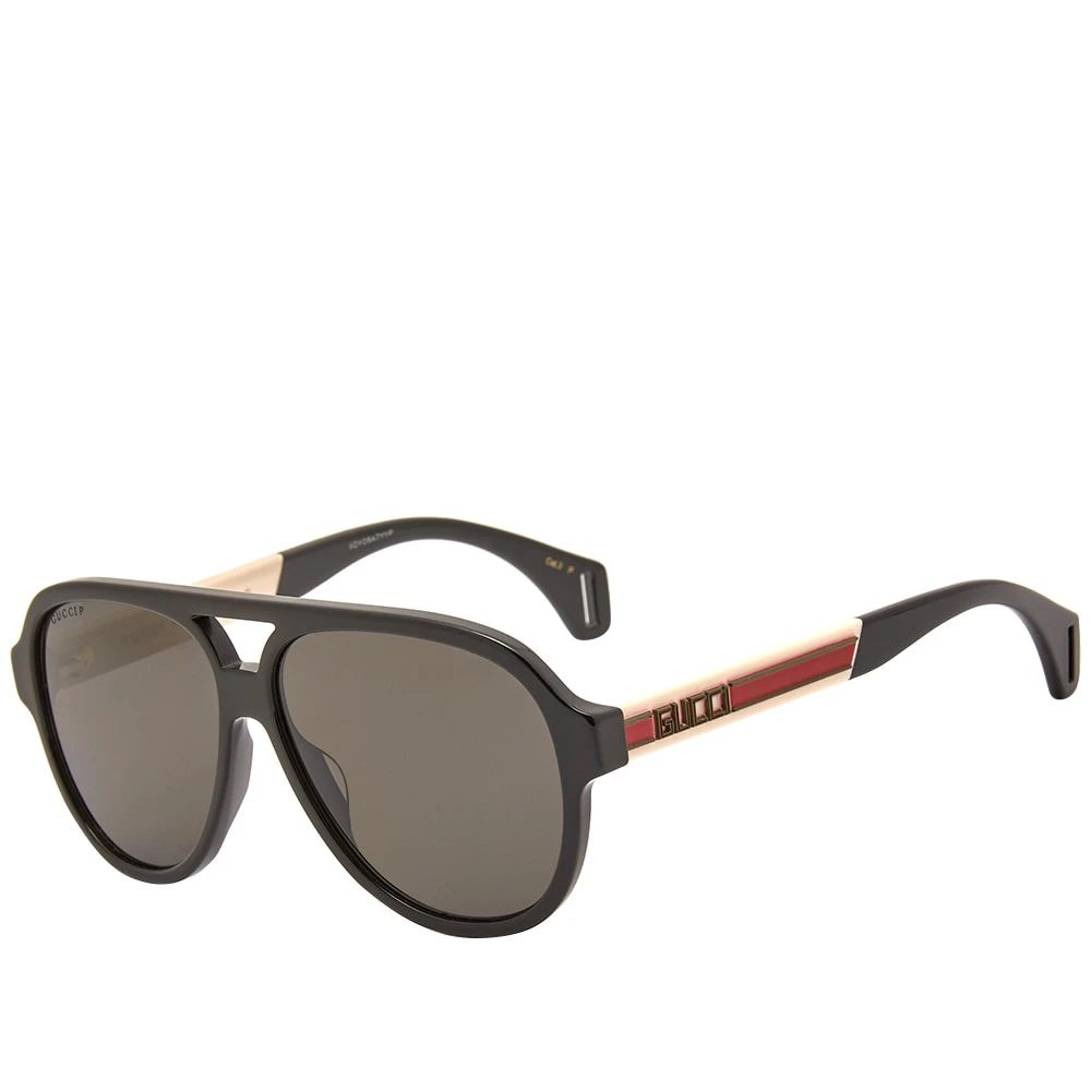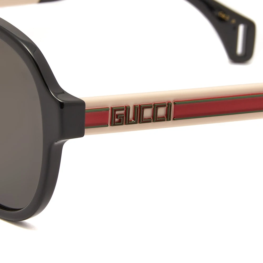 Originally designed in 1936 to protect pilots’ eyes while flying, aviator sunglasses have since become highly popular for their unique shape and large lenses. In typical Gucci style, these have a luxurious edge with a branded plaque on each leg and signature red and green striping.