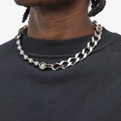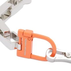Add a bold statement to your street-ready look with this silver necklace from Heron Preston. Made from silver-toned brass, it shows off a multi-chain design and is complete with a orange clasp, that’s engraved with signature branding.