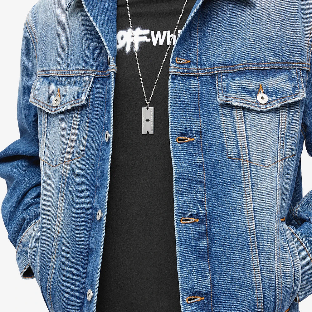 Add a touch of Heron Preston’s industrial street-focused flair to your look with this razor blade necklace. A cut above the rest, it’s Italian-made from silver-tone brass and complete with signature engraved branding.