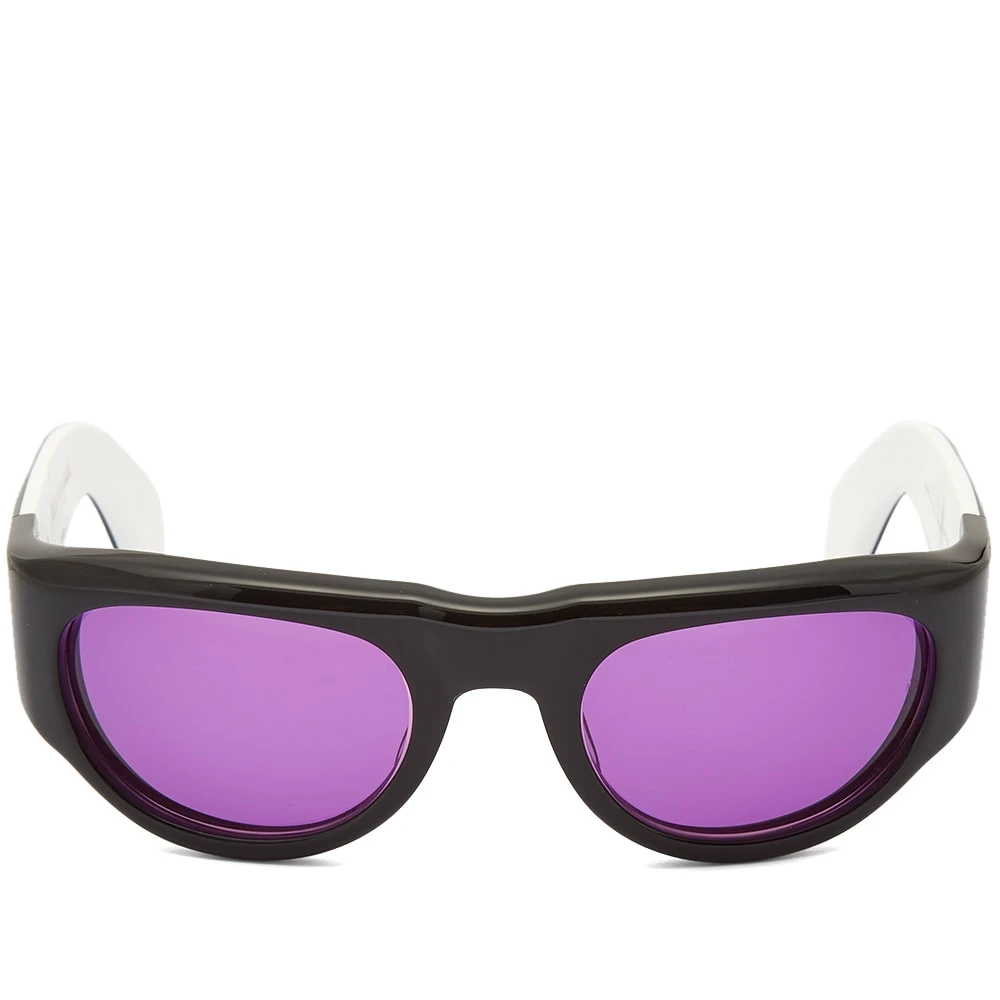 Jacques Marie Mage often takes cues from historic figures – and the clue is in the name who the Clyde silhouette takes after. Crafted from polished black acetate, they’re cut to a bold, oval shape and fitted with purple tinted lenses that promise complete protection on sunny days.