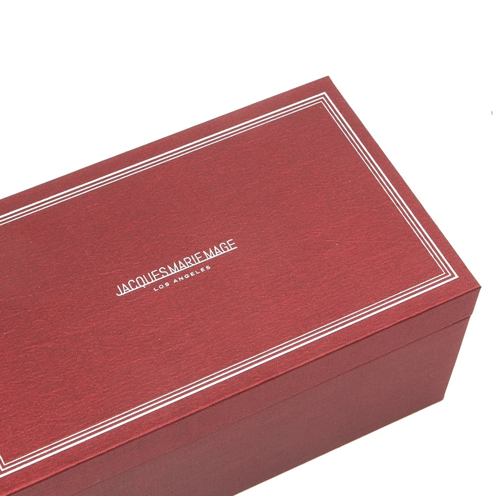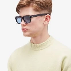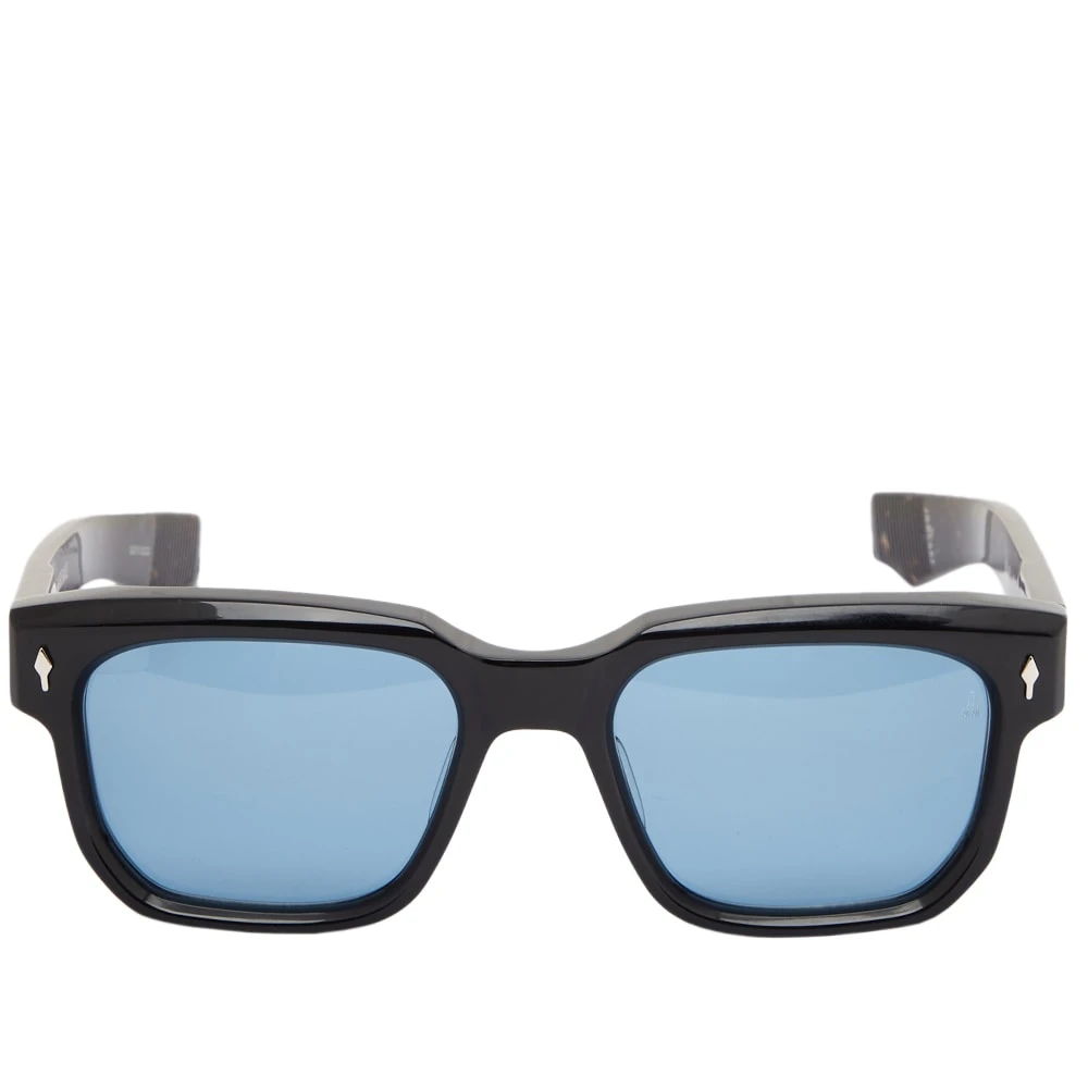 Jacques Marie Mage, specialises in hand-crafted and micro-produced eyewear. The Plaza sunglasses look to the past and draw inspiration from the legacy of Italian designers, directors and artists in film, fashion and literature and the inventiveness and craft they have showcased. Made from acetate in a thick structural frame, they have blue lenses and signature arrow-head pins at the front in sterling silver.