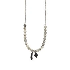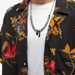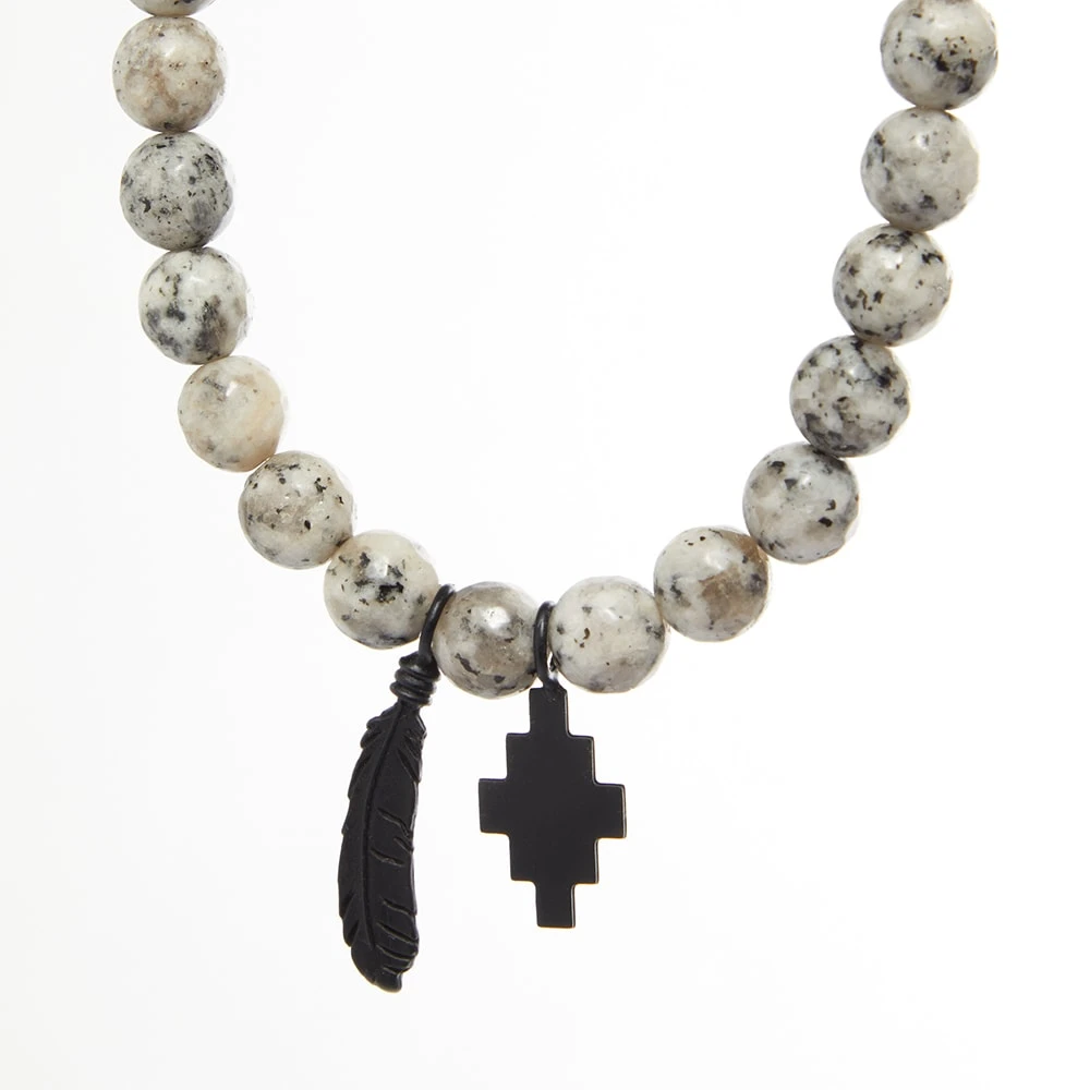 Add a distinctive, grungy touch to your look with this silver-toned necklace from Milan-based fashion label Marcelo Burlon. Made in Italy, it’s styled with statement speckled-effect beads and features two black-tone pendants – the brand’s iconic cross and a quill-like feather. It’s secured with a classic lobster clasp to finish.
