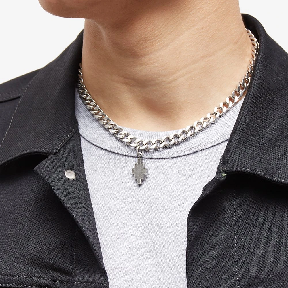 Constructed with a statement curb-chain, this silver-tone necklace from Milan-based label Marcelo Burlon is a timeless addition to your everyday jewellery rotation. Inspired by the cross of Patagonia – Burlon’s homeland – it’s styled with the iconic geometric-cross pendant and secured with a classic lobster clasp to finish.