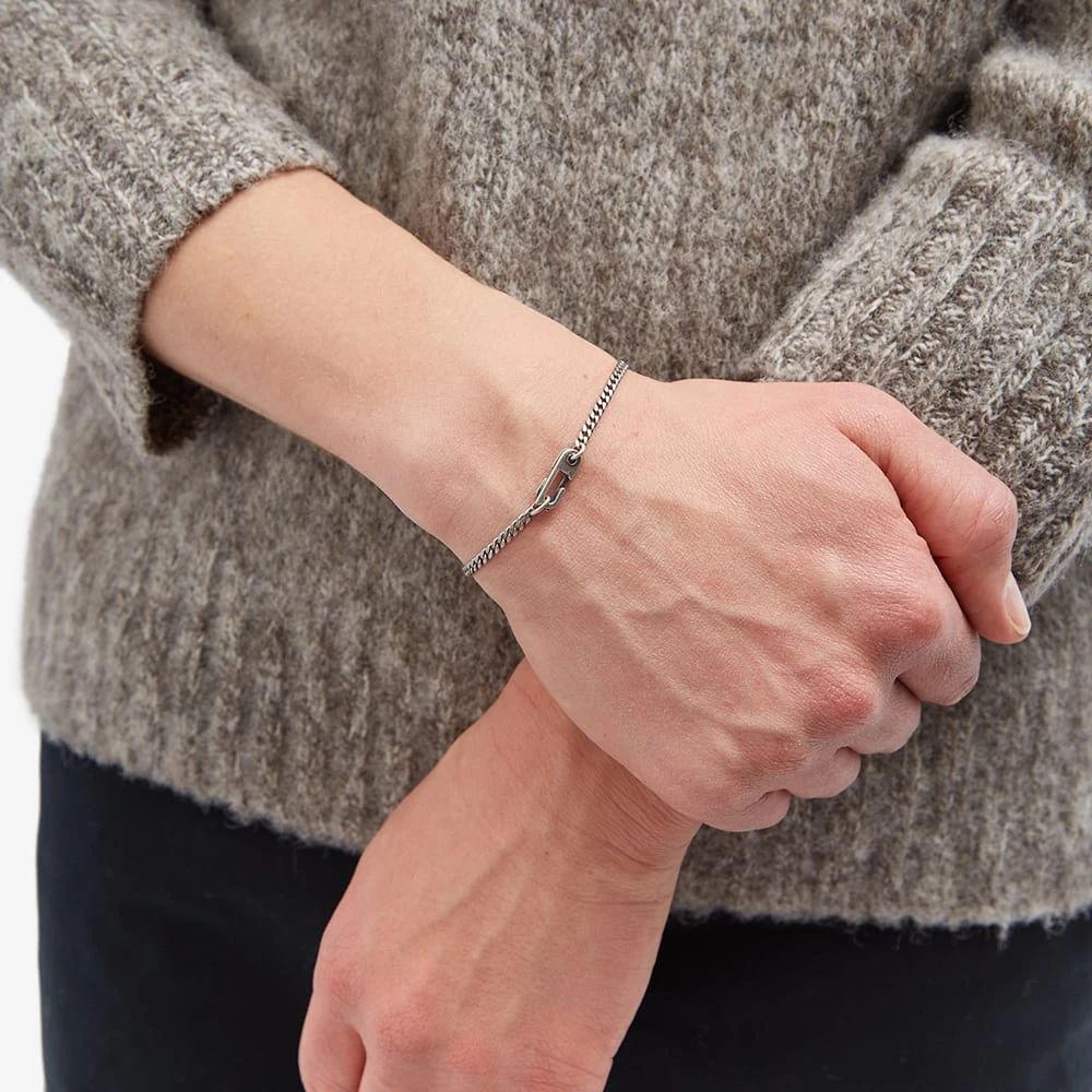 Luxury jewellery brand Miansai keeps things simple with the Annex Cuban Chain bracelet. It’s crafted using thin sterling silver Cuban links and secured with a hardware-inspired scissor clasp.