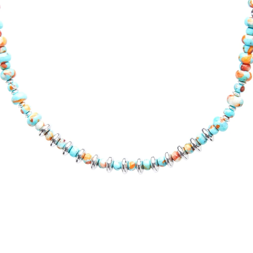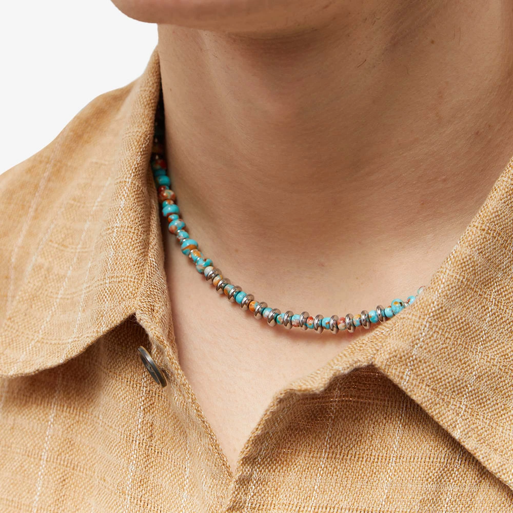 Aki Mitsubayashi encapsulates her adventures with Mikia’s contemporary jewellery collection and this necklace. Turquoise and hematite beads are fused together to create a marble effect across the design – while subtle silver-tone accents add to the good vibes.