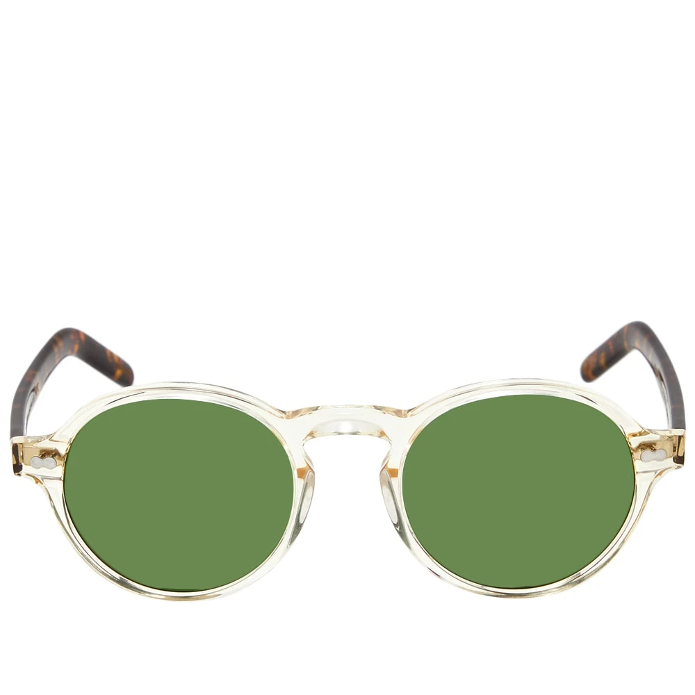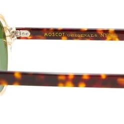 Showing off a two-tone look that’s firmly rooted in Moscot’s native NYC heritage, this pair of Glick shades has been crafted from the finest Italian acetate. Styled with clear lenses and tortoise shell arms, they are finished with gold-tone branding on the inside of the frame.