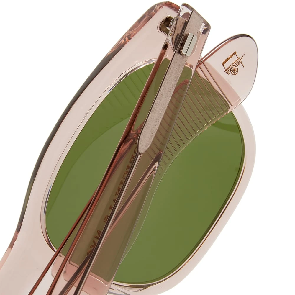 The Hitsik sunglasses from Moscot draw inspiration from a local East Village musician in the ‘60s. This rose pink pair are handcrafted from Italian acetate and styled with tinted green lenses for a street-ready look.