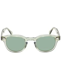 The thick frame of Moscot’s Lemtosh sunglasses calls back to creatives of the past, but this pair’s colour is all contemporary. It’s crafted from translucent, sage green Italian acetate — to match the tint of the lenses — and detailed with diamond-shaped rivets at the temples.