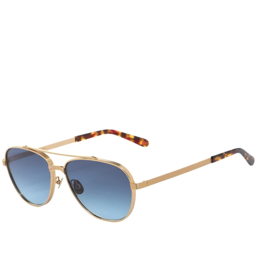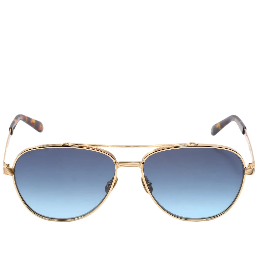 Inspired by iconic aviators, Moscot styles these Shav sunglasses with a thin frame and large lenses. Made from Italian acetate, they’re coloured in gold with blue tinted glass that offers complete UV protection.