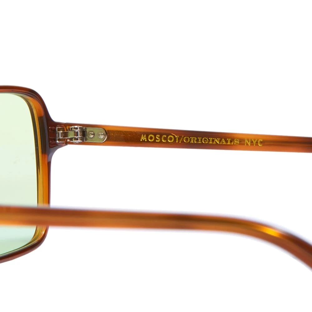 Sure to get you on the VIP list at a New York Shindig, this pair of sunglasses from Moscot is the perfect party companion. They feature a robust rectangular shape in tobacco brown and lime green tinted lenses to add that retro flair.