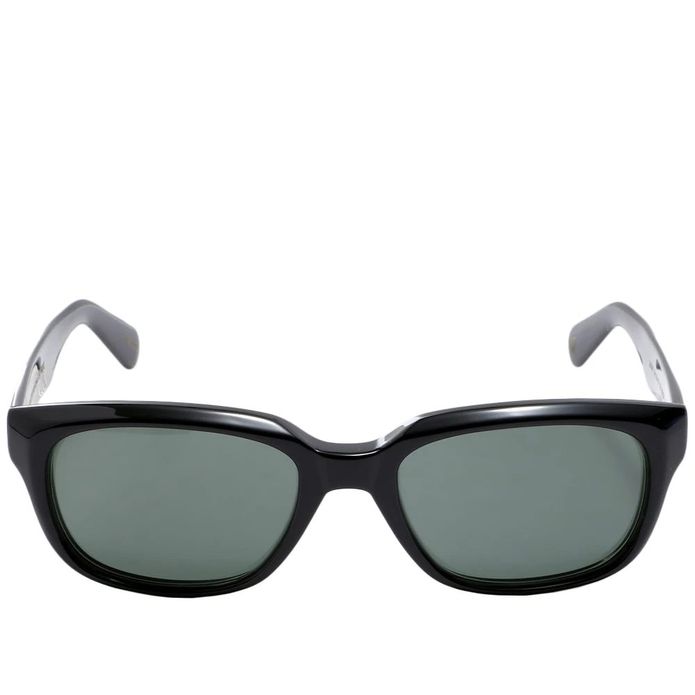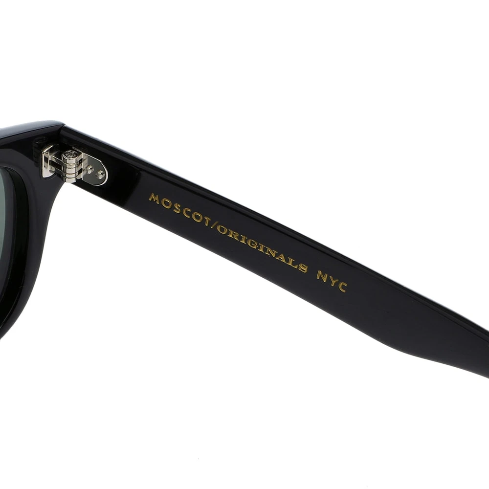 Designed to make a bold statement, Moscot’s Fritz sunglasses have a thick, Italian acetate frame in solid black. Their glass lenses are tinted in green and offer complete protection from UV rays, while a gold-tone engraved logo on the leg completes the look.