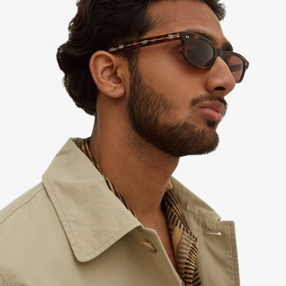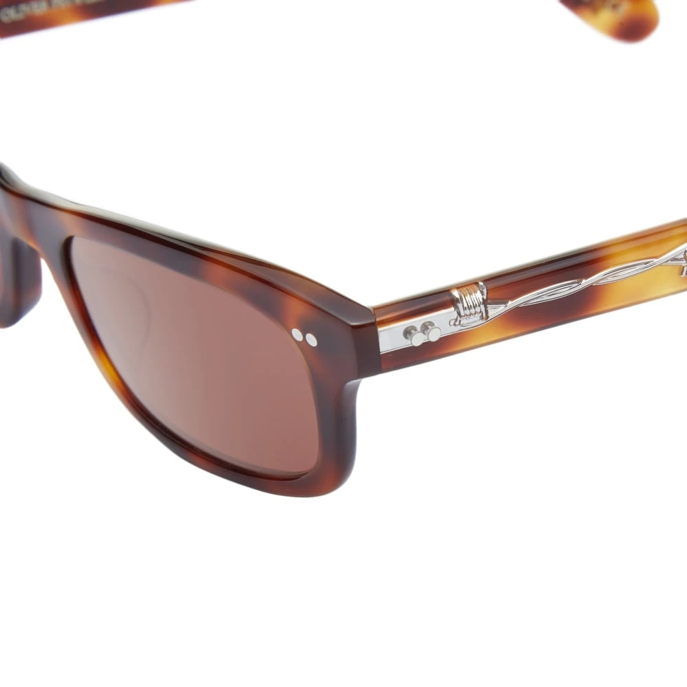 Oliver Peoples collaborates with multidisciplinary creative, Fai Khadra, to design these sleek sunglasses. Crafted from premium acetate, they show off a tortoiseshell rectangular frame with brown tinted lenses for a retro look and are detailed with a barbed wire print at the temples for an edgy finish.