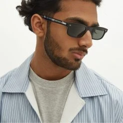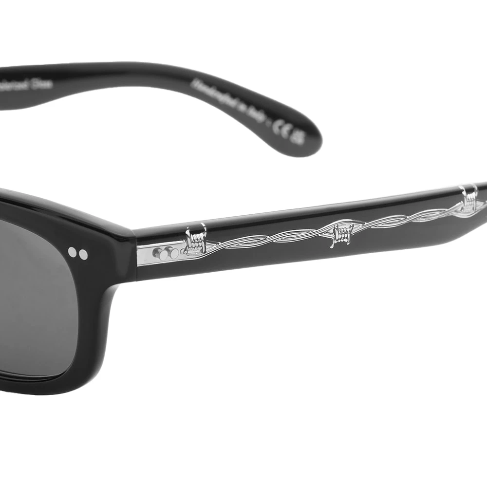 Oliver Peoples collaborates with multidisciplinary creative, Fai Khadra, to design these sleek sunglasses. Crafted from premium acetate, they show off a classic black rectangular frame with tinted lenses – for a classic look – and are detailed with a barbed wire print at the temples for an edgy finish.