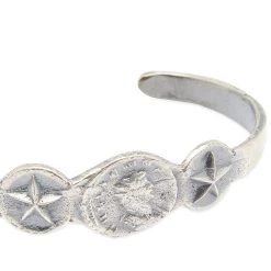 Our Legacy is a cult Sweden-founded brand, renowned for its meticulous attention to detail and craftsmanship. Promising to elevate your seasonal ‘fit, this open-cuff, sterling silver bangle – that’s handmade in Sweden – features melted-effect coin and star detailing and has a luxe, antique finish.