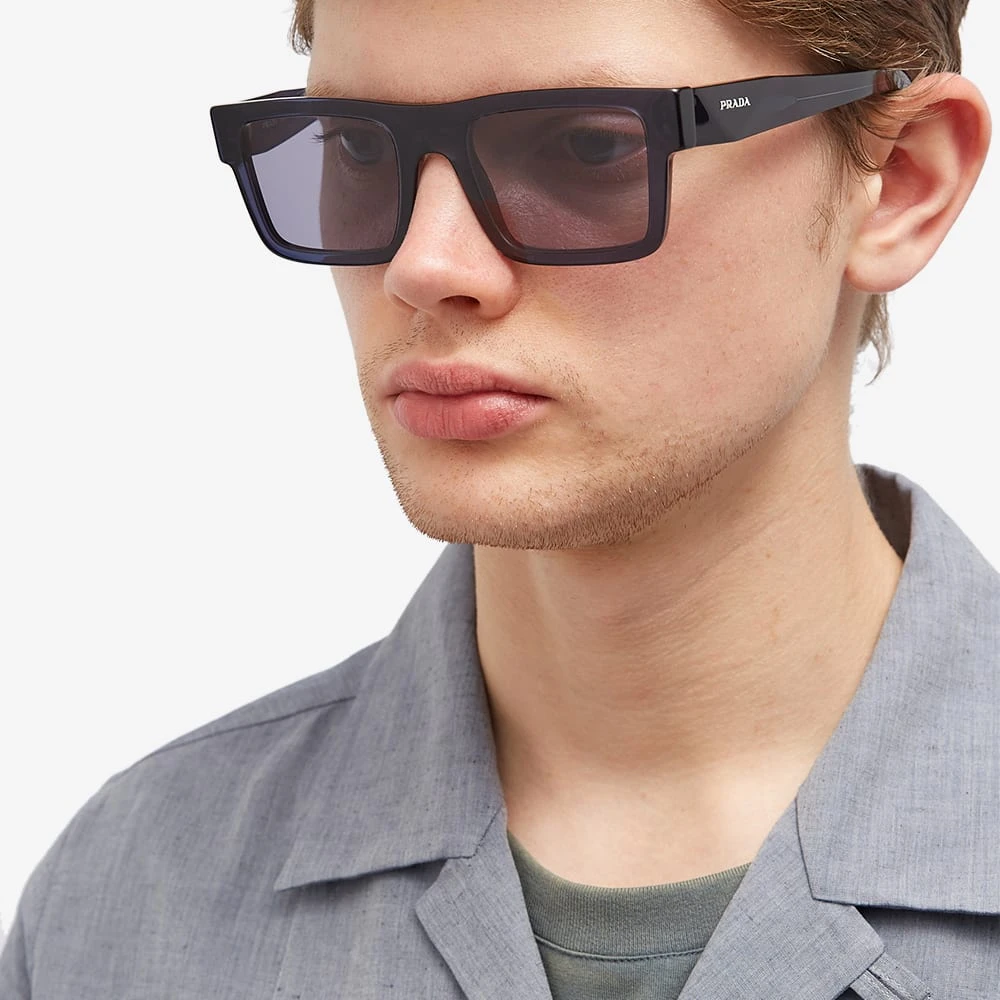 Prada’s catwalk-inspired Symbole sunglasses return again this season in a sleek black and blue colourway. They’re designed with bold square frames, then the houses’ iconic logo branding marks the temples.