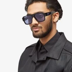 Add a bold touch to your accessory collection with these sunglasses from Prada. Crafted from premium acetate, they show off a statement square frame that’s detailed with a crackle print and are fitted with purple-tinted lenses for a retro look. To finish, they’re signed off at the temples with the labels signature logo.