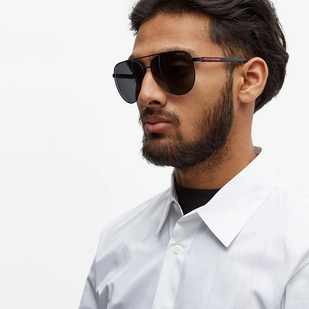 Prada adds its signature refined touch to a classic style with these black aviator sunglasses. Crafted with a sleek metal frame, this pair are fitted with tinted lenses, then signed off with branding on the arms for a distinctive finish.