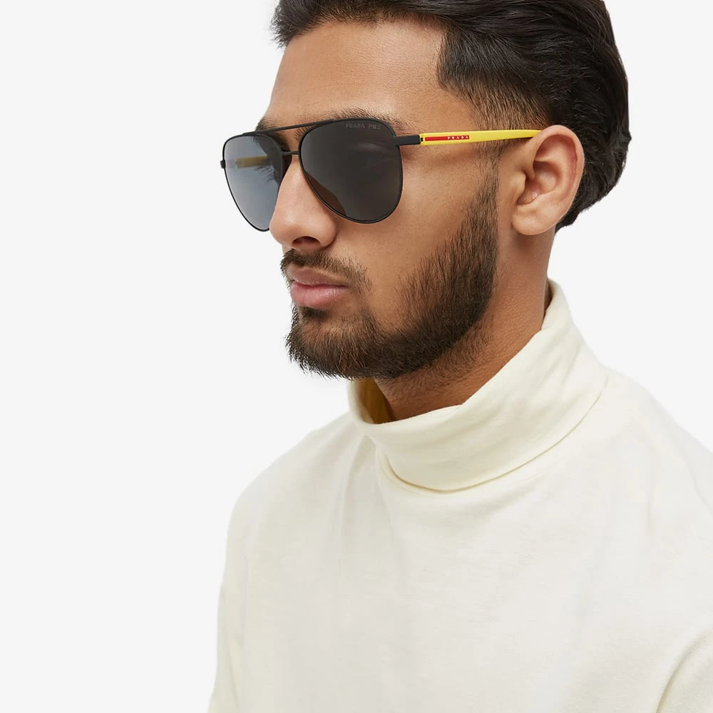 Aviator’s are a signature style – and these black editions from Prada are perfect for an effortlessly stylish summer look. Crafted with a sleek metal frame, the pair are fitted with a tinted lens, then signed off with bright yellow arms and red branding for a signature touch.