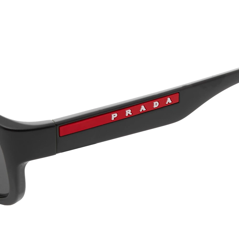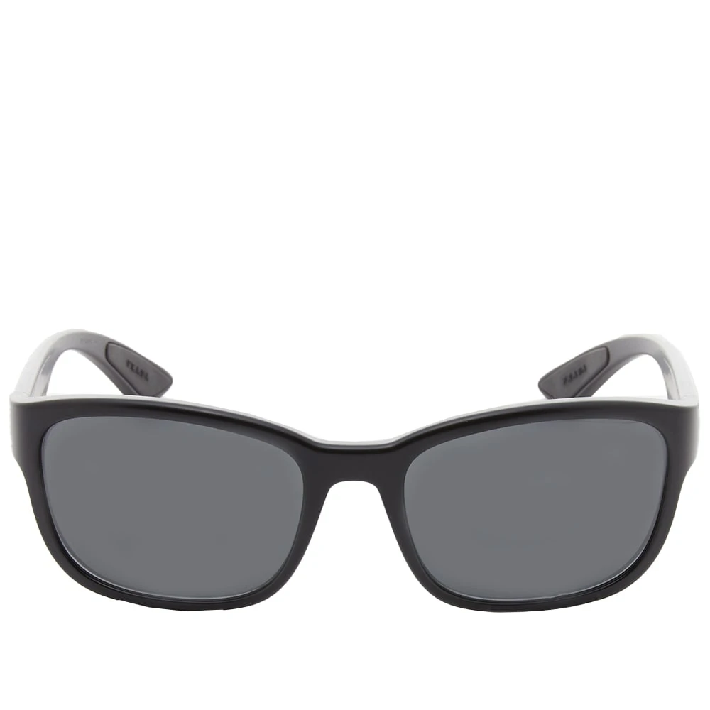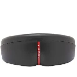 Classic, with a stylish Prada twist, these black sunglasses arrive crafted from nylon for a durable finish. Fitted with black tinted lenses, the pair are given a pop of colour in the form of signature red branding at either arm.