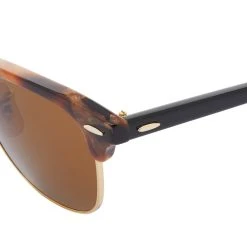 An original icon and now one of the most successful eyewear designs of all time, Ray Ban’s Clubmaster silhouette is made with premium acetate and classic B-15 lenses this season. The style was originally developed for military use because of their high level of clarity, comfort and protection. This tortoiseshell pair are finished with distinctive gold-tone detailing.
