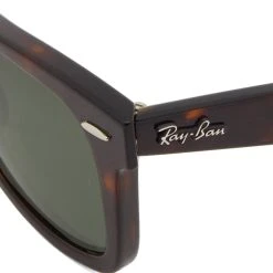 A classic eyewear style from the sunglass experts at Ray Ban, these Havana Wayfarers are timeless. Their rectangular silhouette offers total UV protection and comes complete with signature branding at the arm