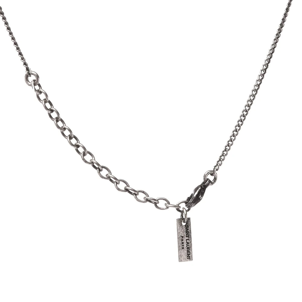 Accessorise your looks with a touch of luxury courtesy of this timeless pendant necklace from Saint Laurent. Crafted from brass, the silver chain is complete with a branded pendant that’s ideal for layering.