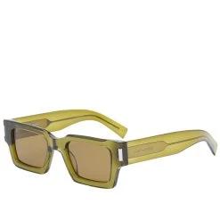 Saint Laurent moves away from its minimalist aesthetic to create these bold sunglasses. In green, they show off a thick square frame – that’s made from sturdy acetate – and they’re fitted with tonal green lenses. At the temple, they’re signed off with signature branding.