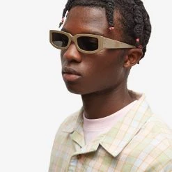 Meet your new go-to sunglasses for every season, courtesy of Sunnei. Their dark olive frames are crafted from high-quality acetate and house black lenses to keep you shaded in style. The brand’s signature logo is engraved on the arms.