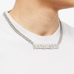 Round any look together with this logo necklace from VETEMENTS. Globally renowned for its avant-garde aesthetics, this couture accessory proves the Swiss brand can keep it more low-key – but its gothic logo is just as eye-catching as ever.